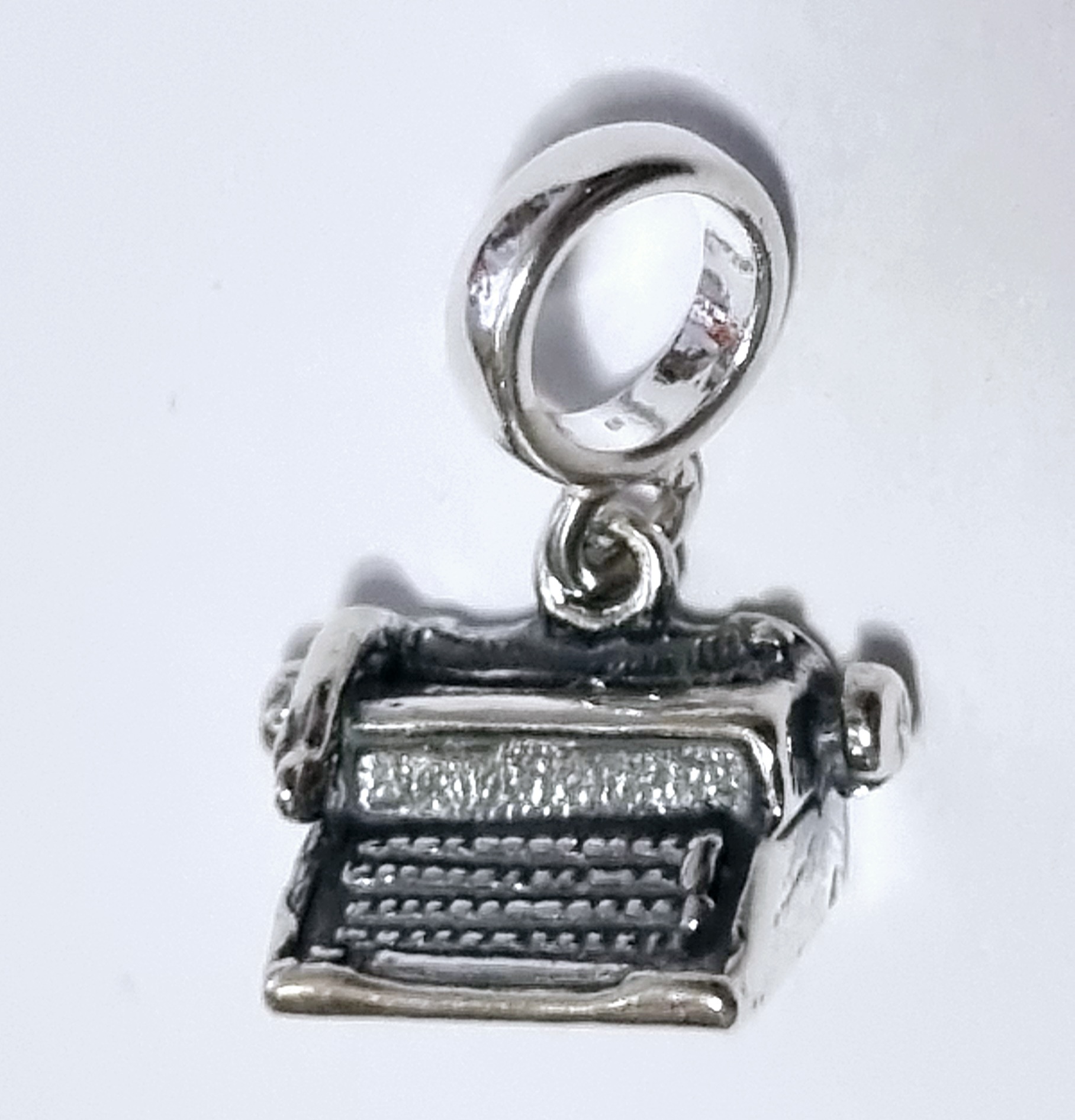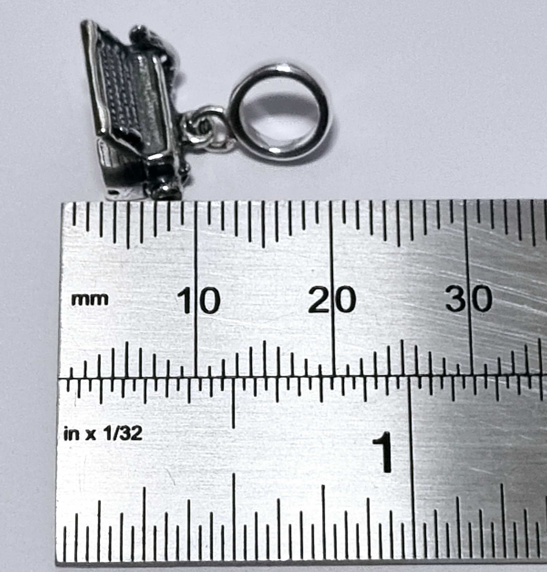 a customer just purchased a typewriter charm, choosing the bead fitting, and just thought I would put it here so you can see the finished article as well as images against the ruler.
